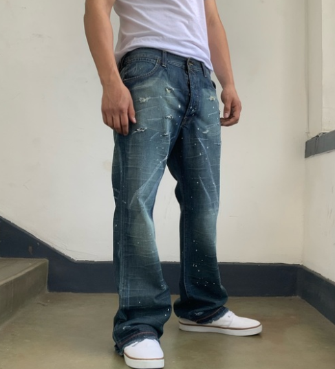 Men's VonDutch Blue | White Spots Button Fly Jeans NWT
