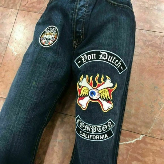 Women’s VonDutch Sandblast Patched Denim Pants NWT