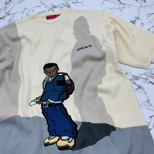 Men's RP55 Cream | Grey Short Sleeve Sweater NWT