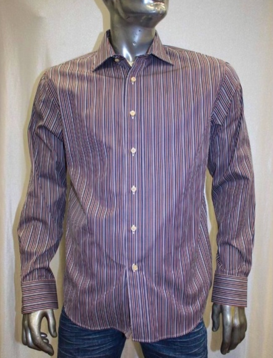 Men's Rufus Deep Burgundy | Navy Striped Long Sleeve Button Down Shirt NWT