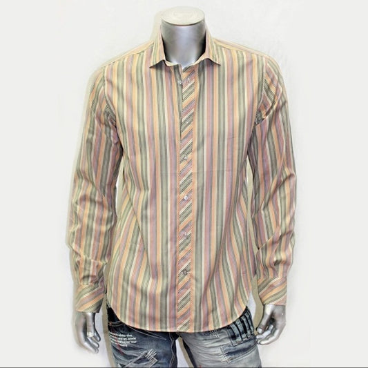 Men's Rufus Beige | Green | Orange | Purple | Black Pinstripe Button Down Shirt NWT