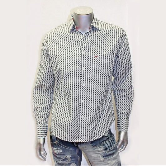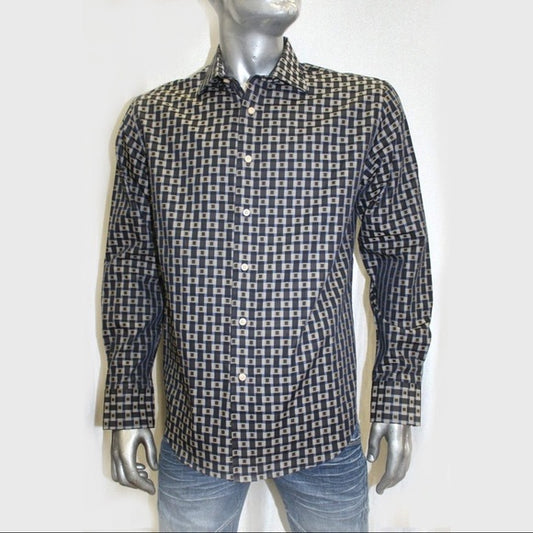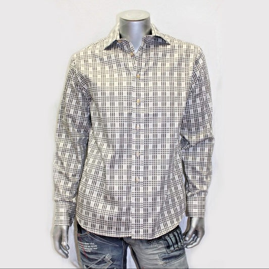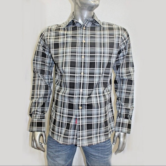 Men's Rufus Black | White | Grey Long Sleeve Button Down Shirt NWT