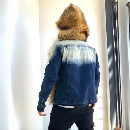 Men's RS1NE Dk Blue Sandblast Denim Jacket & Faux Fur Hooded Jacket NWT