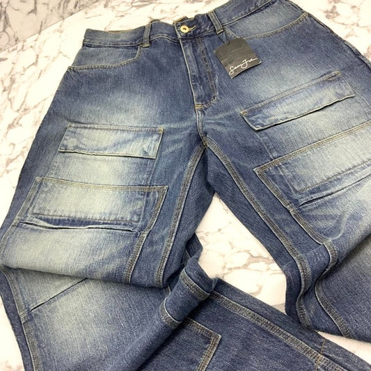 Men's Sean John Dirty Dark Blue | Black Suede Pocket Denim Pants NWT