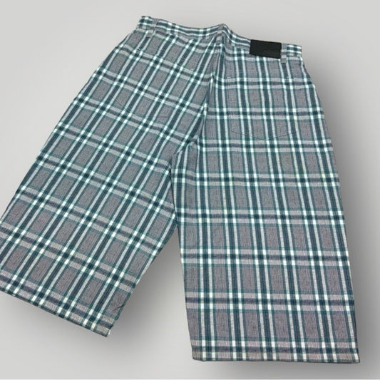 Men's Sean John Plaid Grey | Turquoise | White Casual Shorts NWT