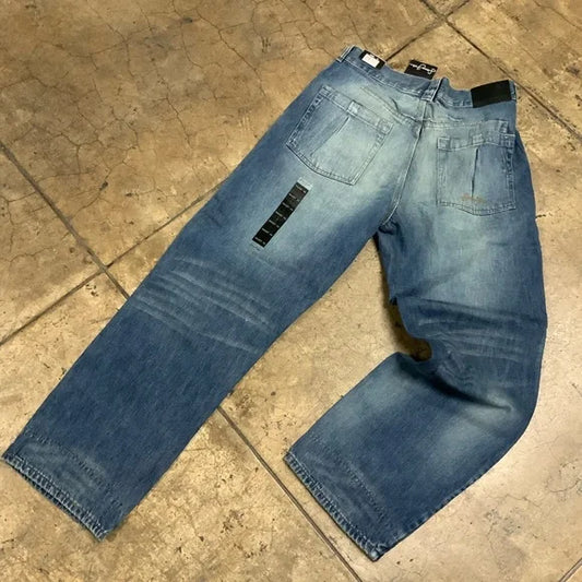 Men's Sean John Mid Blue Sandblast Wide Leg Denim Pants NWT