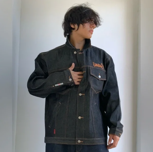 Men's Studio By Southpole Raw Black | Orange Casual Denim Jacket NWT