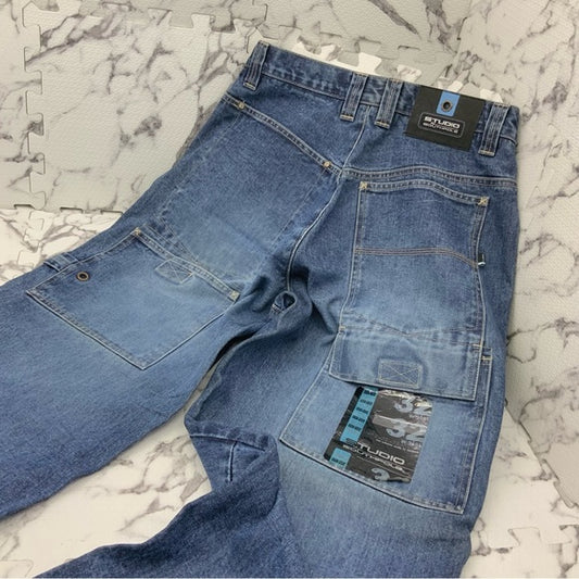 Men's Studio by Southpole Duffy Duck Blue | Distressed Cuff Wide Leg Denim Pants NWT