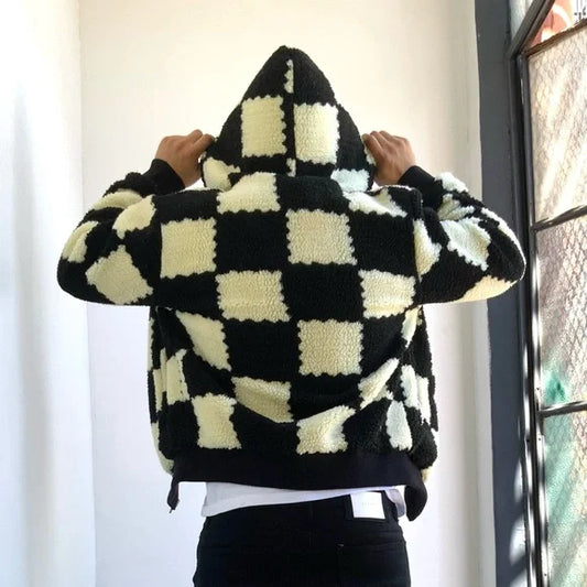 Men’s Black | Ivory Sherpa Hooded Jacket by Makobi NWT