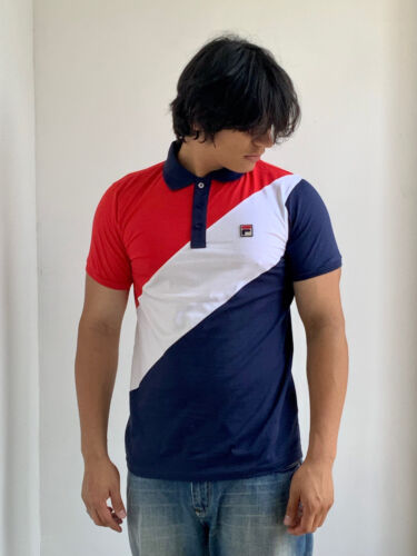 Men’s Fila Red | White | Navy Short Sleeve Button Down Polo Shirt NWT