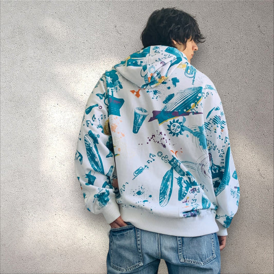 Men’s Live Mechanics Vibe White | Blue Full Zip Hoody NWT