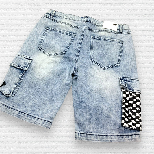 Men’s Maison Noir Blue Stone Wash Cargo Denim Shorts NWT