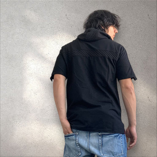 Men’s Makobi Black Rhinestones Hooded Short Sleeve Shirt NWT