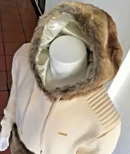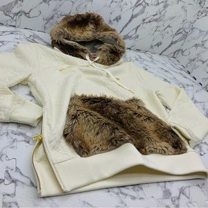 Men’s Makobi Ivory | Brown Faux Fur Quilted Pullover Hoodie NWT