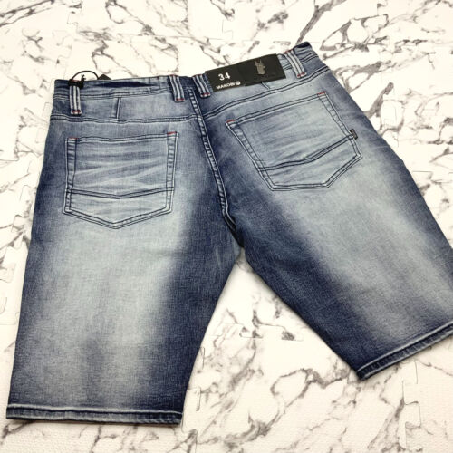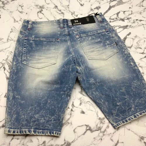 Men’s Makobi Mid Blue Stone Wash Ripped Denim Shorts NWT
