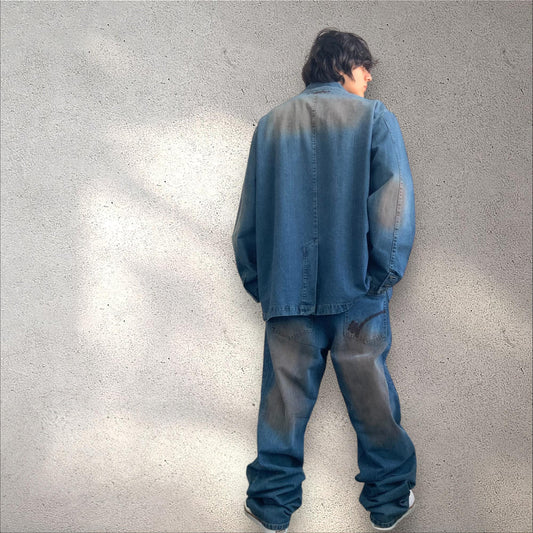 Men’s Miskeen Blue Denim Hand-Painted Distressed Outfit Set NWT