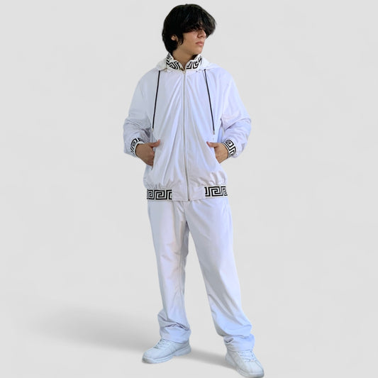 Men’s Manzini White | Black Velvet Hooded Casual Tracksuit Outfits Sets NWT