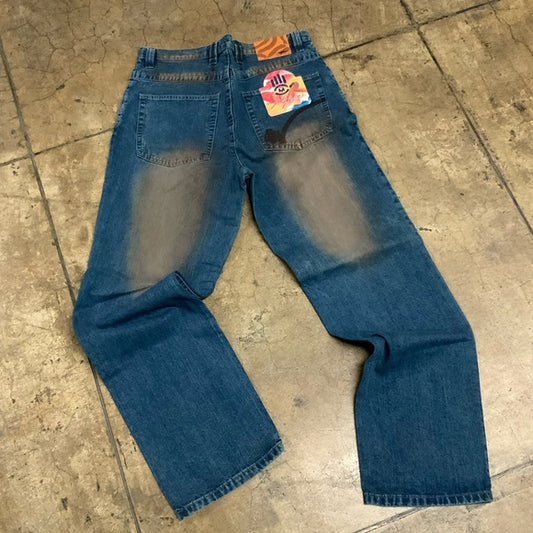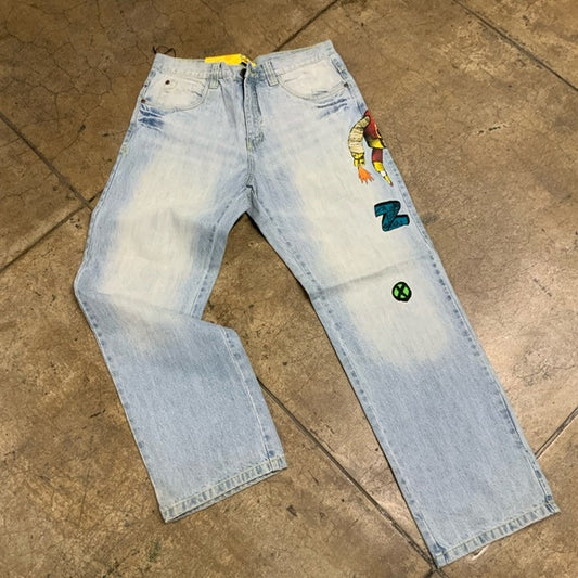 Men’s Miskeen Blue Hand Painted Denim Pants NWT