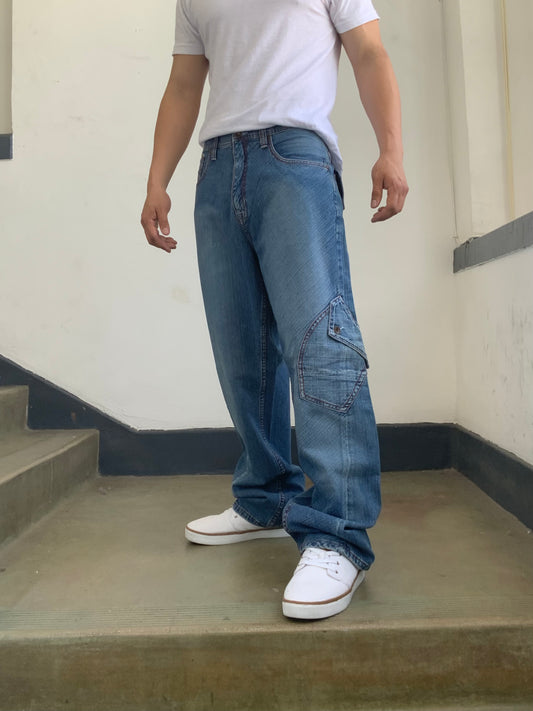 Men’s Rocawear Mid Blue Sandblast Denim Pants NWT