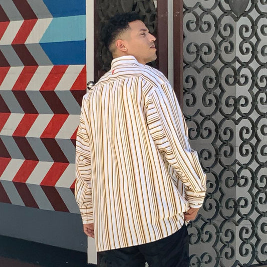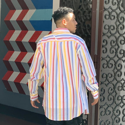 Men’s Rocawear Striped White | Yellow | Navy L/S Button Down Shirts NWT