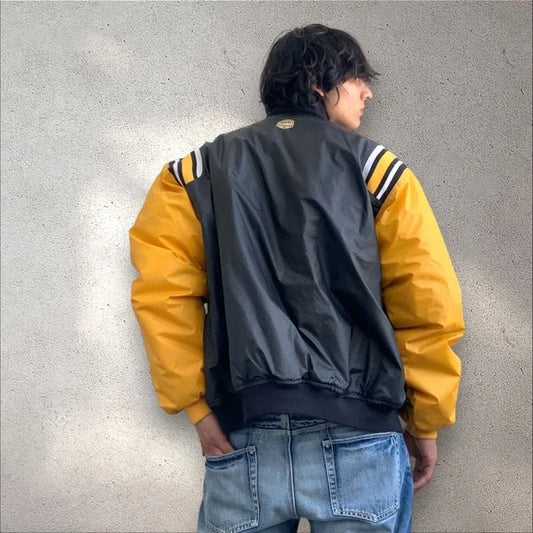 Men’s Vokal Varsity Black | Mustard Distressed Sleeves Jacket NWT