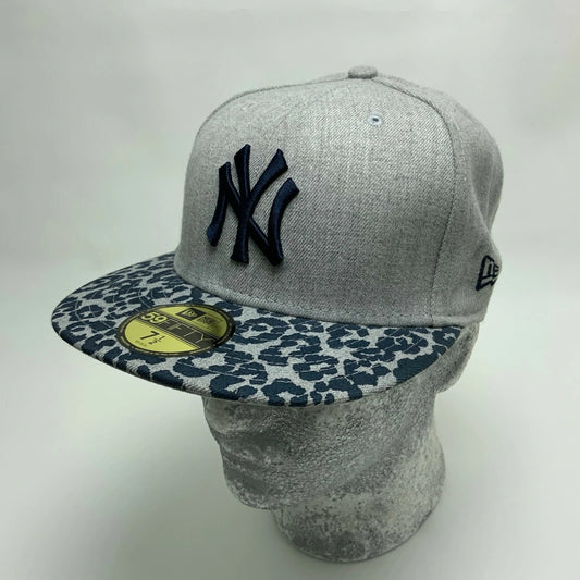 New Era Cap MLB NY Yankees Heather Grey Navy Leopard 59FIFTY Hat