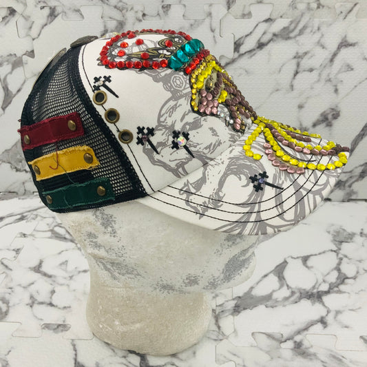 Rebel Spirit Lion King White | Black | Yellow | Aqua | Red Rhinestone Trucker Hat NWT