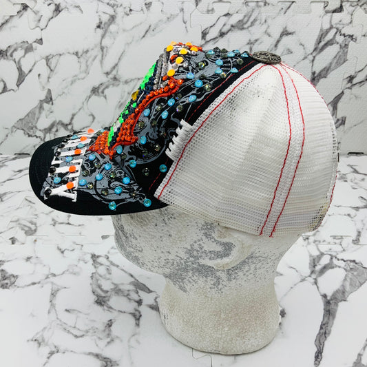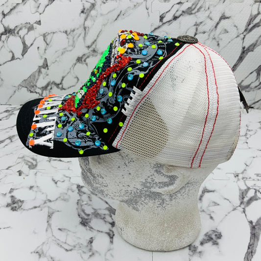Rebel Spirit Royalty Skull Black | White | Red | Lime Green | Sky Blue Rhinestone Trucker Hat NWT