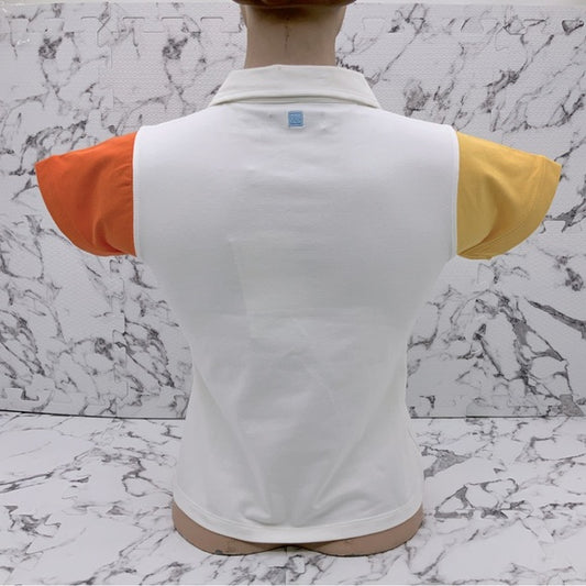 Women's Azzure White | Yellow | Orange V-Neck Polo Shirt NWT