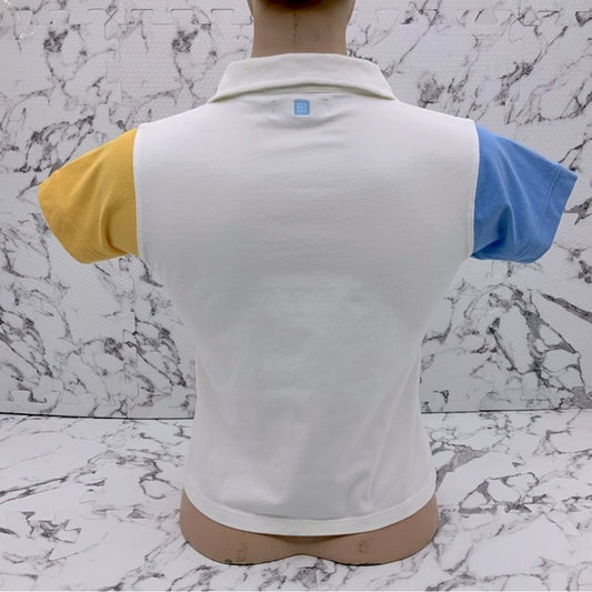 Women's Azzure White | Sky Blue | Yellow V-Neck Polo Shirt NWT