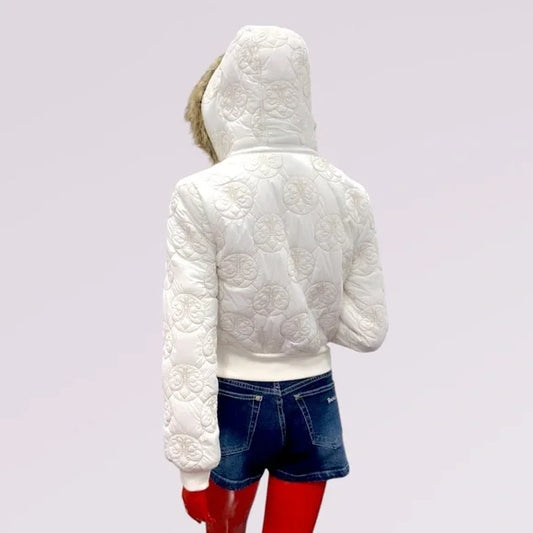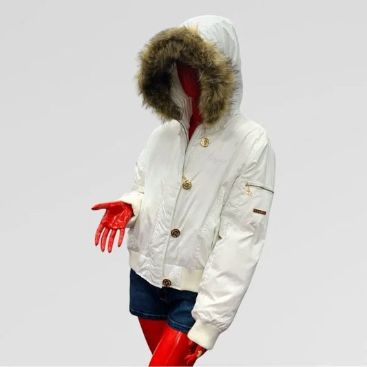 Women's Baby Phat Vintage White | Gold Hooded Faux Fur Jacket NWT