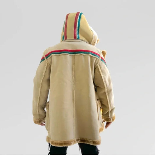 Men's Jordan Craig Tan | Red | Green Casual Faux Shearling Hooded Jacket NWT