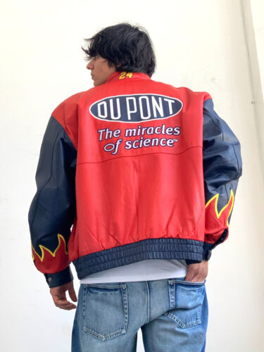 Men's Jeff Hamilton Nascar Red Navy Yellow Oupont Leather Jacket NWT