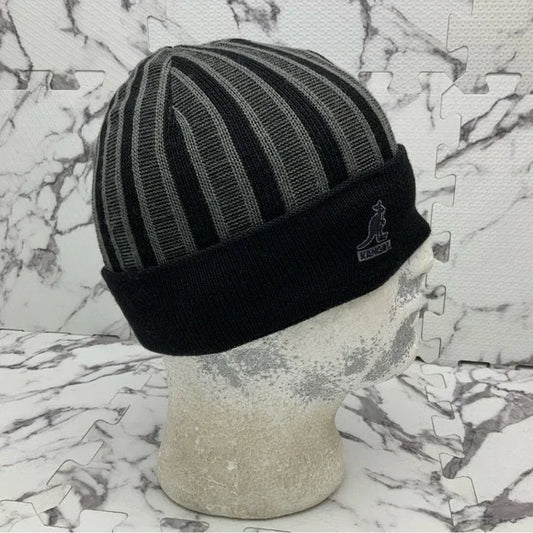 Men's Kangol Black | Grey Rib Stripe Rev Cuff Pull On Beanies NWT