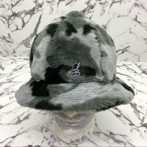 Men's Kangol Grey Camo Faux Fur Fuzzy Casual Bucket Hat NWT