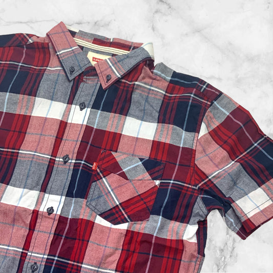 Men's Levi's Red | Navy | White Plaid Button Down S/S Shirt NWT