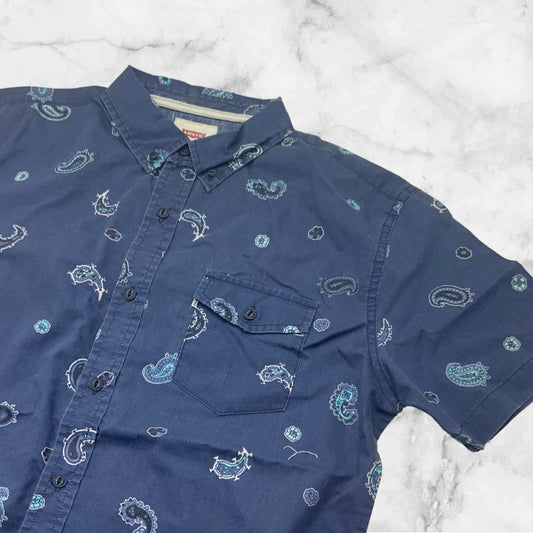 Men's Levi's Paisley Blue Plaid Button Down S/S Shirt NWT