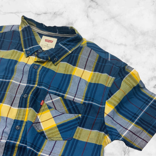 Men's Levi's Blue | White | Yellow Plaid Button Down S/S Shirt NWT