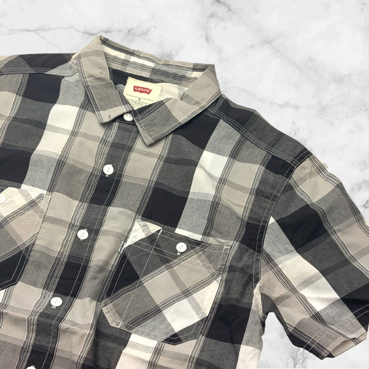 Men's Levi's Grey | Black | White Plaid Button Down S/S Shirt NWT