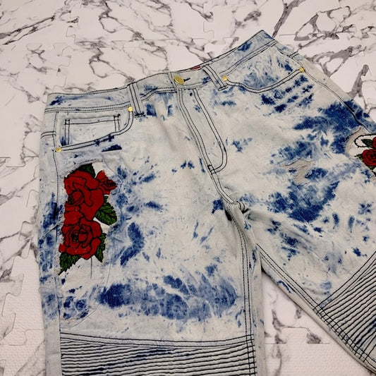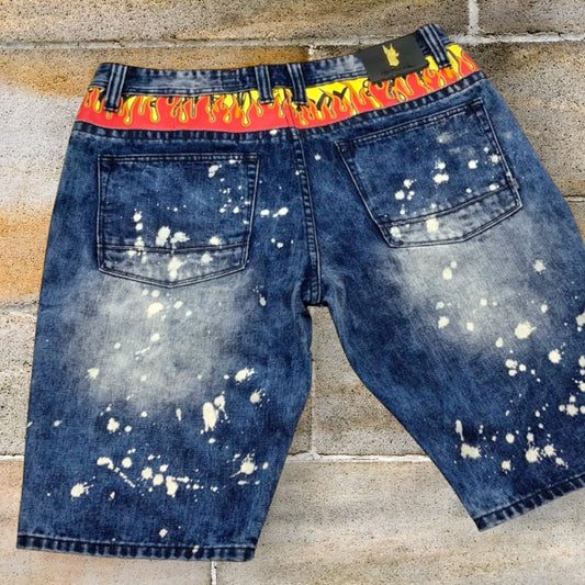 Men's Makobi Blue Splash Flame Denim Shorts NWT