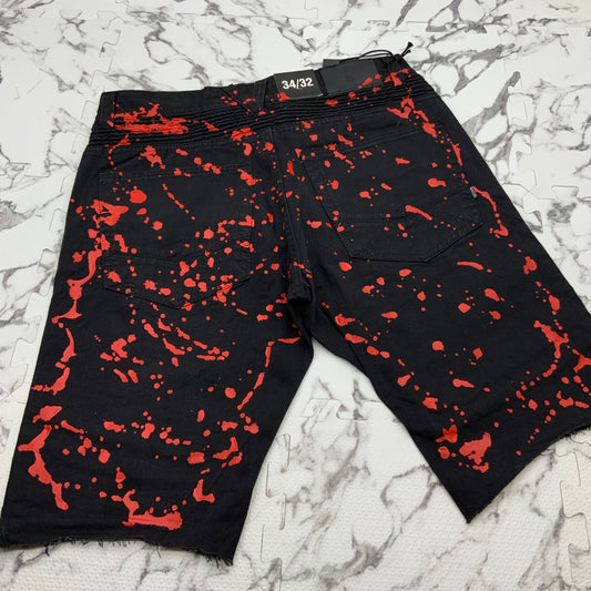 Men's Makobi Black | Red Hand Painted Denim Shorts NWT