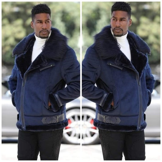 Men's Manzini Navy Faux Fur Winter Jacket NWT