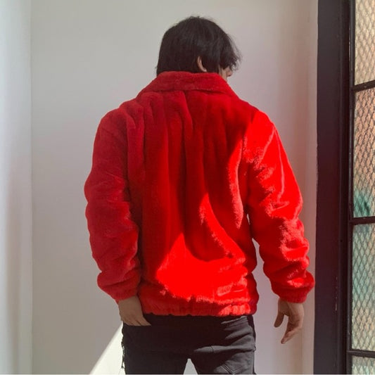 Men's Manzini Red Faux Fur Fuzzy Casual Coat NWT