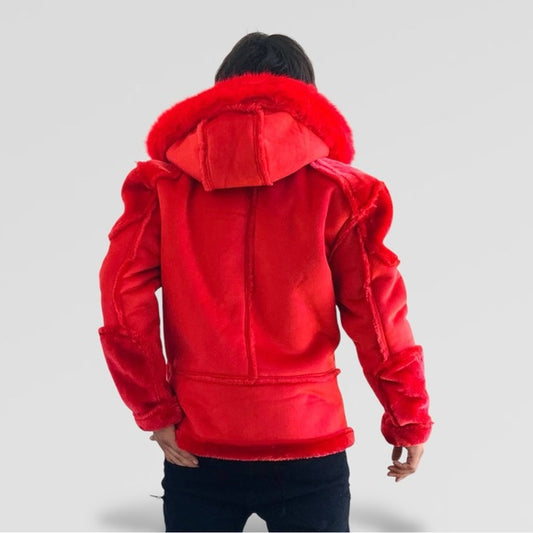 Men's Manzini Red Faux Fur Hooded Winter Jacket NWT