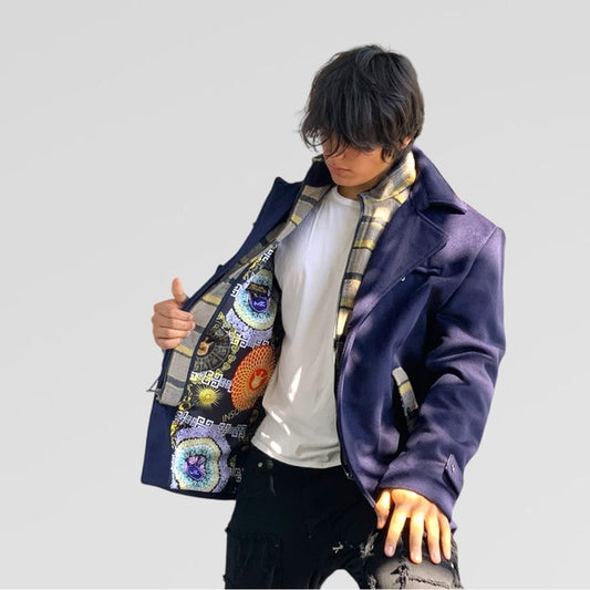 Men's Manzini Navy | Tan Detachable Scarf Casual Coat NWT