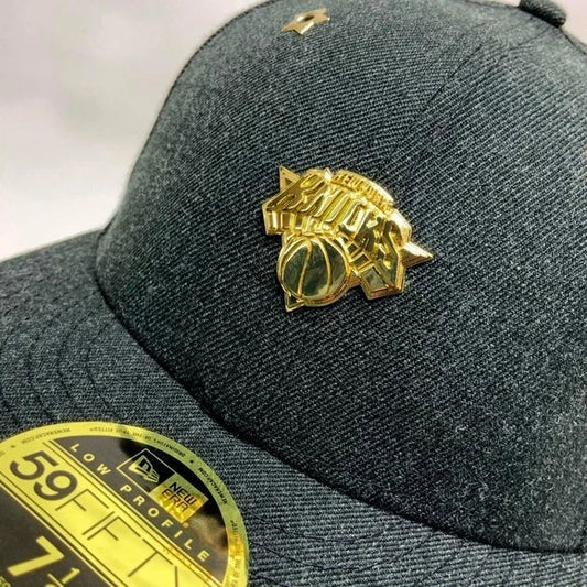 Men's New Era Cap Black Gold Pin NY Knicks 59FIFTY NBA