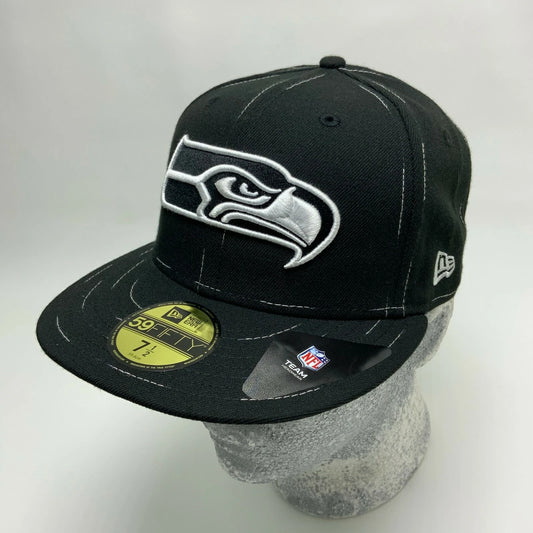 Men's New Era Cap NFL Seattle Seahawks Black White 59FIFTY Hat