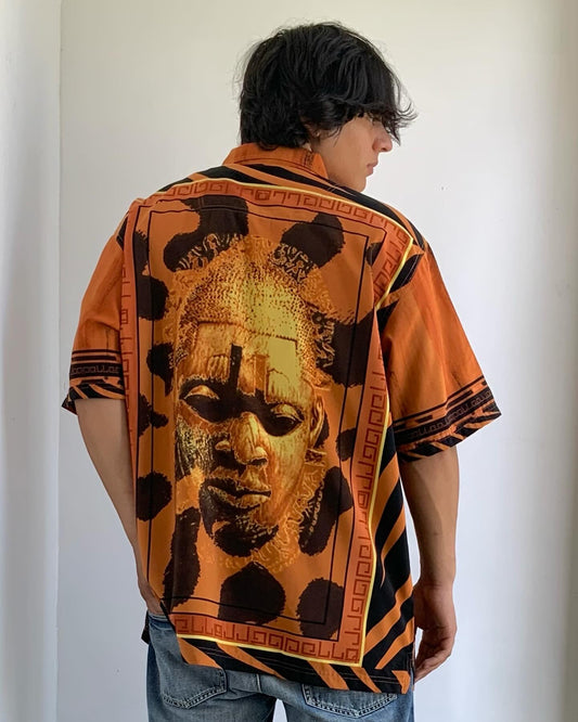 Men's Pelle Pelle African Art Rust Orange | Black | Yellow Button Down S/S Shirt NWT