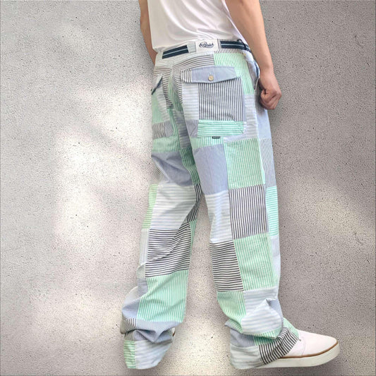 Men's Parish White | Green | Navy Plaid Wide Leg Denim Pants NWT