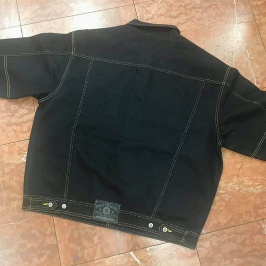 Men's Pelle Pelle Jet Black | Yellow Stitched Casual Denim Jacket NWT
